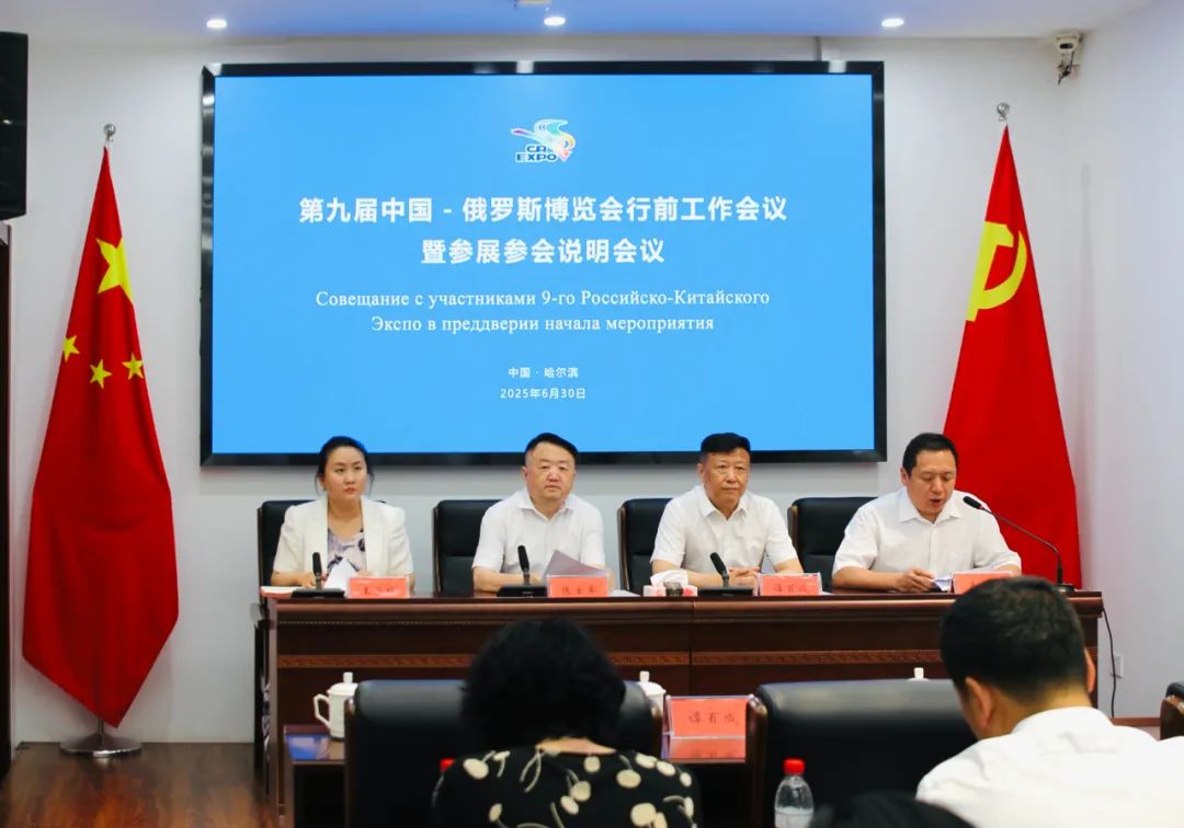 省贸促、商务、外事、安全部门有关负责同志进行参展参会说明、介绍主要活动安排、通报外事出访要求、强调安全保密规定。参加第九届中俄博览会的黑龙江省中省直有关部门、省属重点企业有关负责人在“线下”主会场参会,各省区市商务、贸促系统和中央企业有关负责人,省内市(地)县(市)有关部门负责人在“线上”参会。