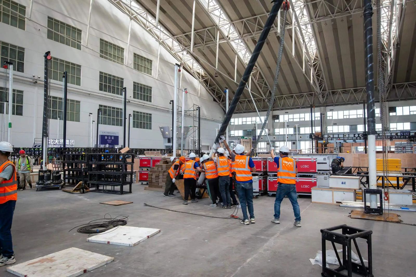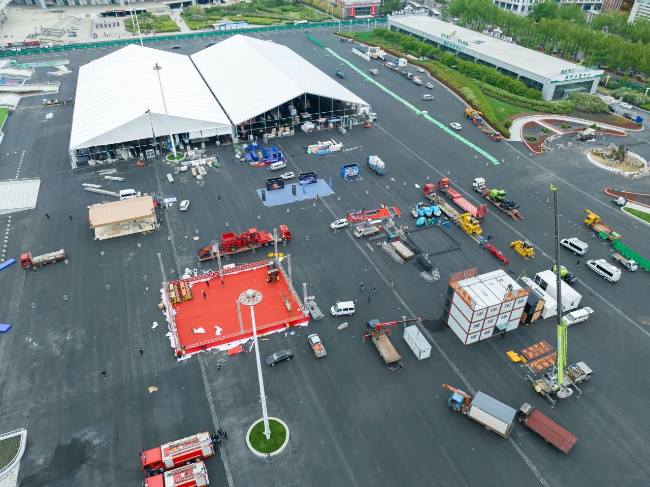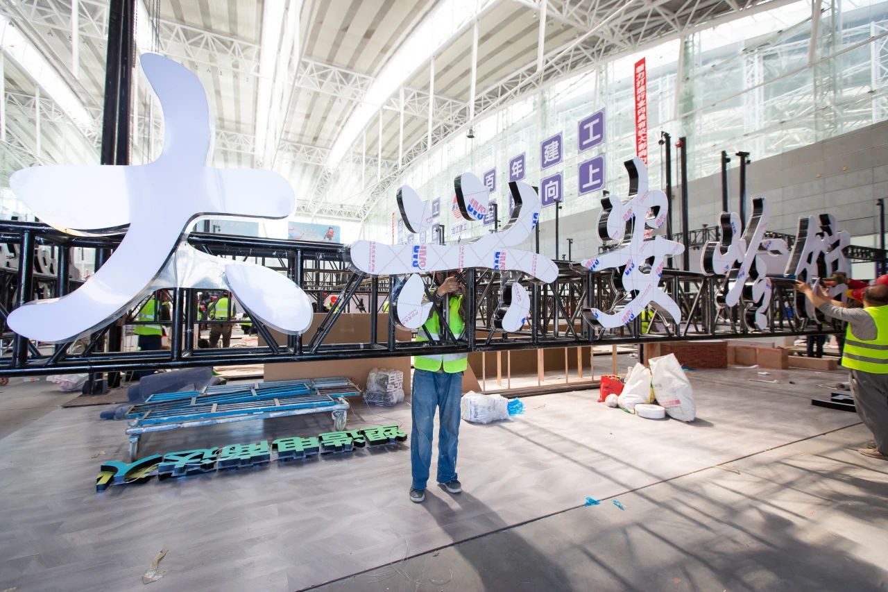 当前,参展单位陆续进场,主会场搭建工作正有序开展。