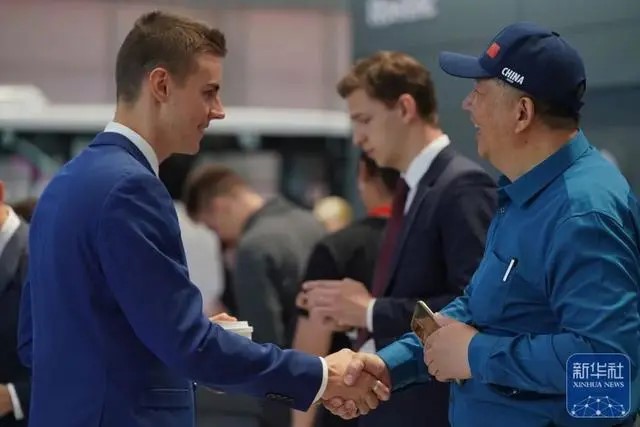 5月18日,参会者在第八届中俄博览会现场互动交流。