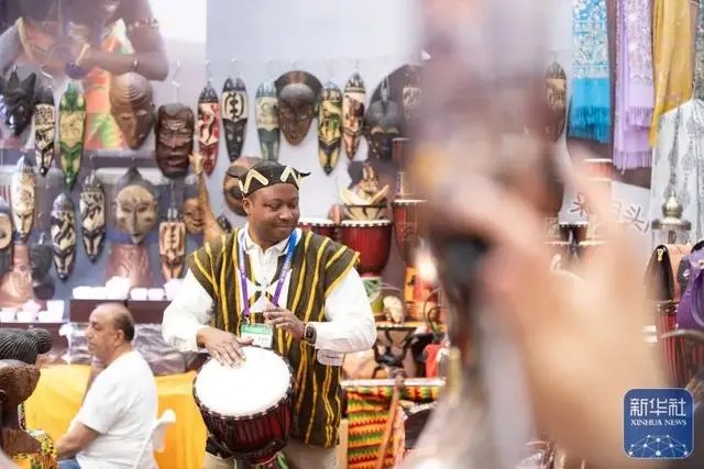 5月18日,在第八届中俄博览会现场,参展商在表演节目。