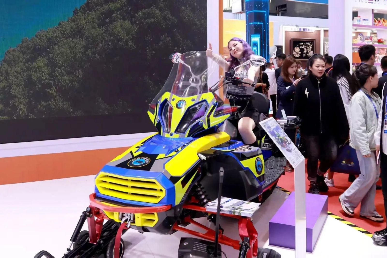“这摩托也太帅了!我能试试吗?”一位参展商被展区内红蓝涂装的雪地摩托深深吸引住。只见黑色履带上密布防滑钉,宽大的车胎彰显着极地适应性。“这款F9-500CC雪地摩托车能拖载300公斤雪爬犁,最高时速可达80至120公里,自动挡驾驶简单又方便。”随着同江赫哲战骑实业有限公司董事长付春生的介绍,又一群中亚客商围观询问起来。