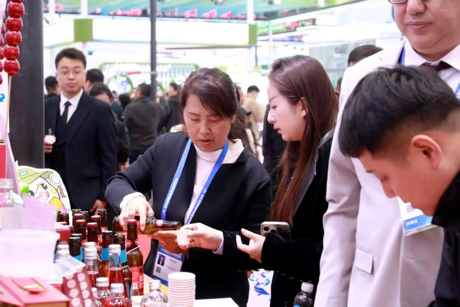 相邻展台,蔓越莓的“变身记”同样精彩。深红色的果实在流水线上化作啤酒、果干、果酱乃至口红、面膜,鲟鳇鱼籽搭配蔓越莓果酱的“红黑CP”也成为了新晋网红,工作人员正忙着补货:“一上午试吃了百余份,已有深圳餐饮集团跟我们预定团购订单了。”