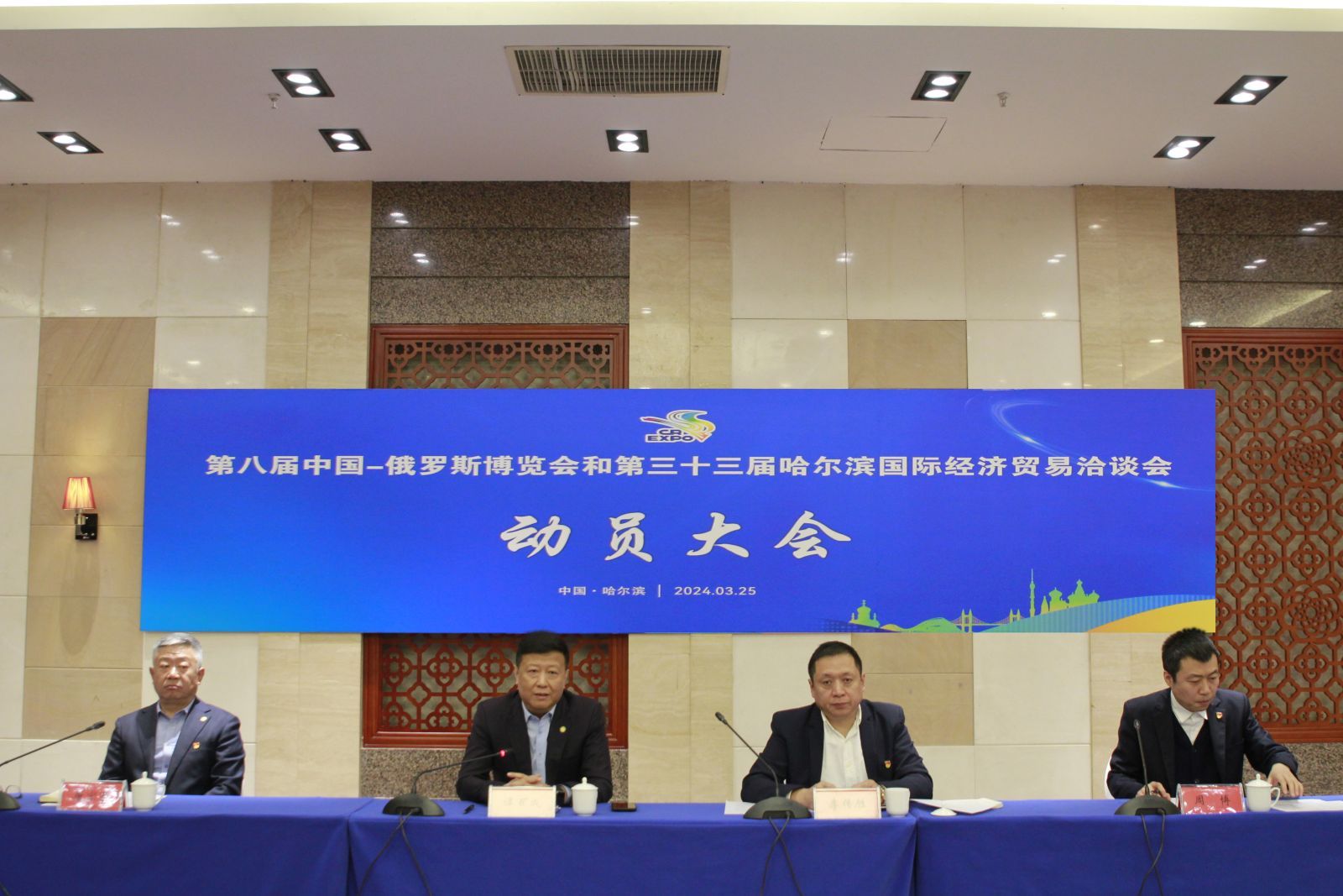3月25日上午,第八届中俄博览会和第三十三届哈洽会工作专班动员大会在哈尔滨国际会展中心召开,省贸促会副会长、省国际博览发展促进中心主任谭百成出席并作动员讲话。