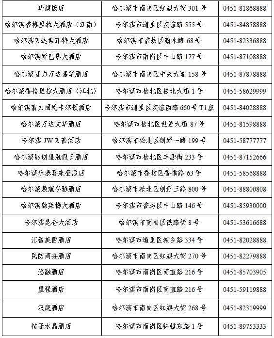 今天,首先为您推荐的是酒店信息。我们选择了城市重要交通枢纽附近(太平国际机场、哈尔滨站、哈尔滨西站)、展场周边以及我市部分高端商务酒店供您选择,希望舒适、安全的住宿环境以及贴心、细致的服务能为您带来良好的逛展体验。
