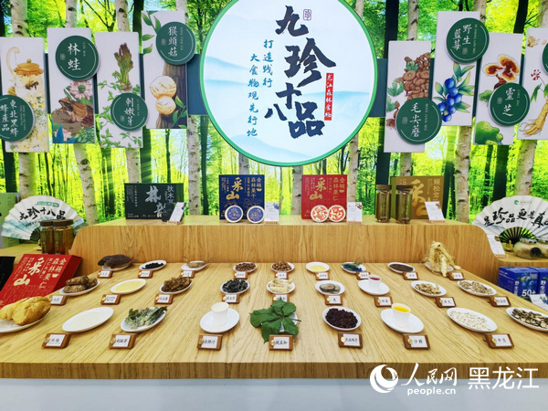 黑龙江森林食物产品省域公用品牌“九珍十八品”。人民网记者 杨雪楠摄