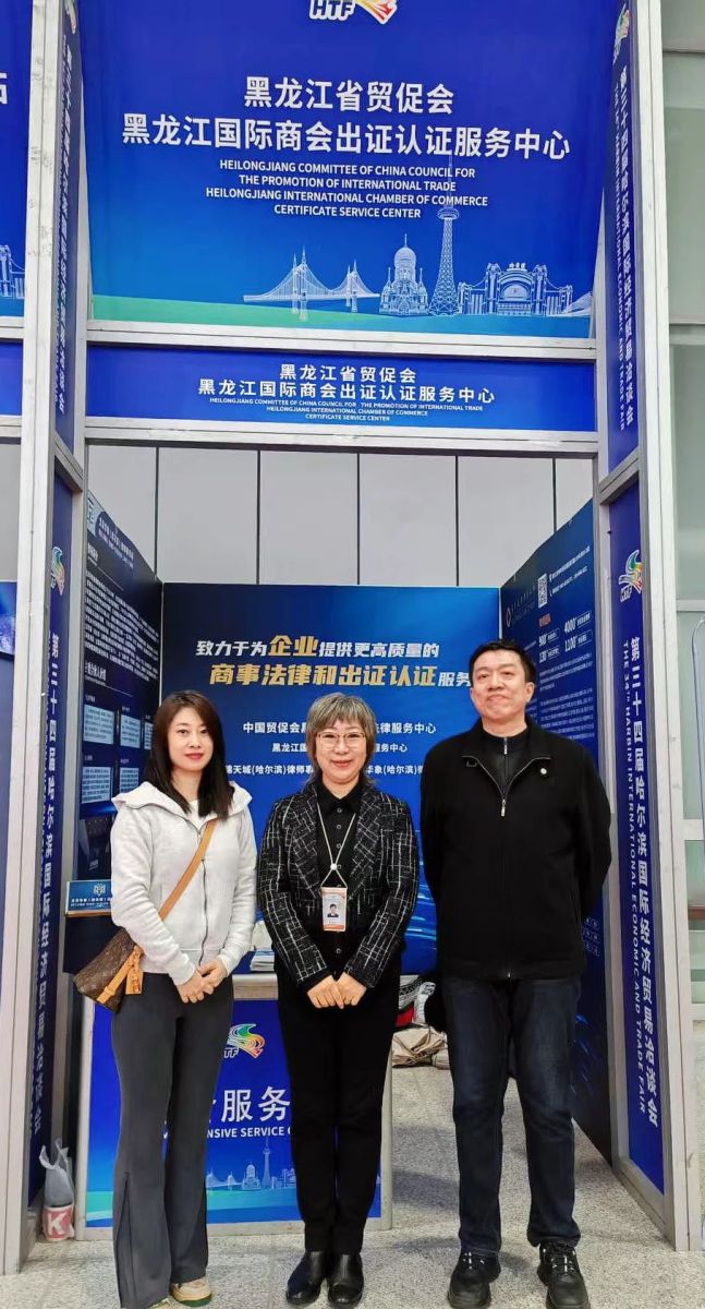 第三十四届哈尔滨国际经济贸易洽谈会(简称“哈洽会”)正如火如荼进行,作为连接国内外经贸合作的重要平台,吸引了众多外贸企业与境外参展商参与。在这场经贸盛会中,黑龙江国际商会出证认证服务中心(简称“中心”)积极发挥职能作用,依托隶属黑龙江省贸促会,经中国贸促会授权的专业优势,为参展企业提供“一站式”商事认证服务,全力保障展会顺利开展。