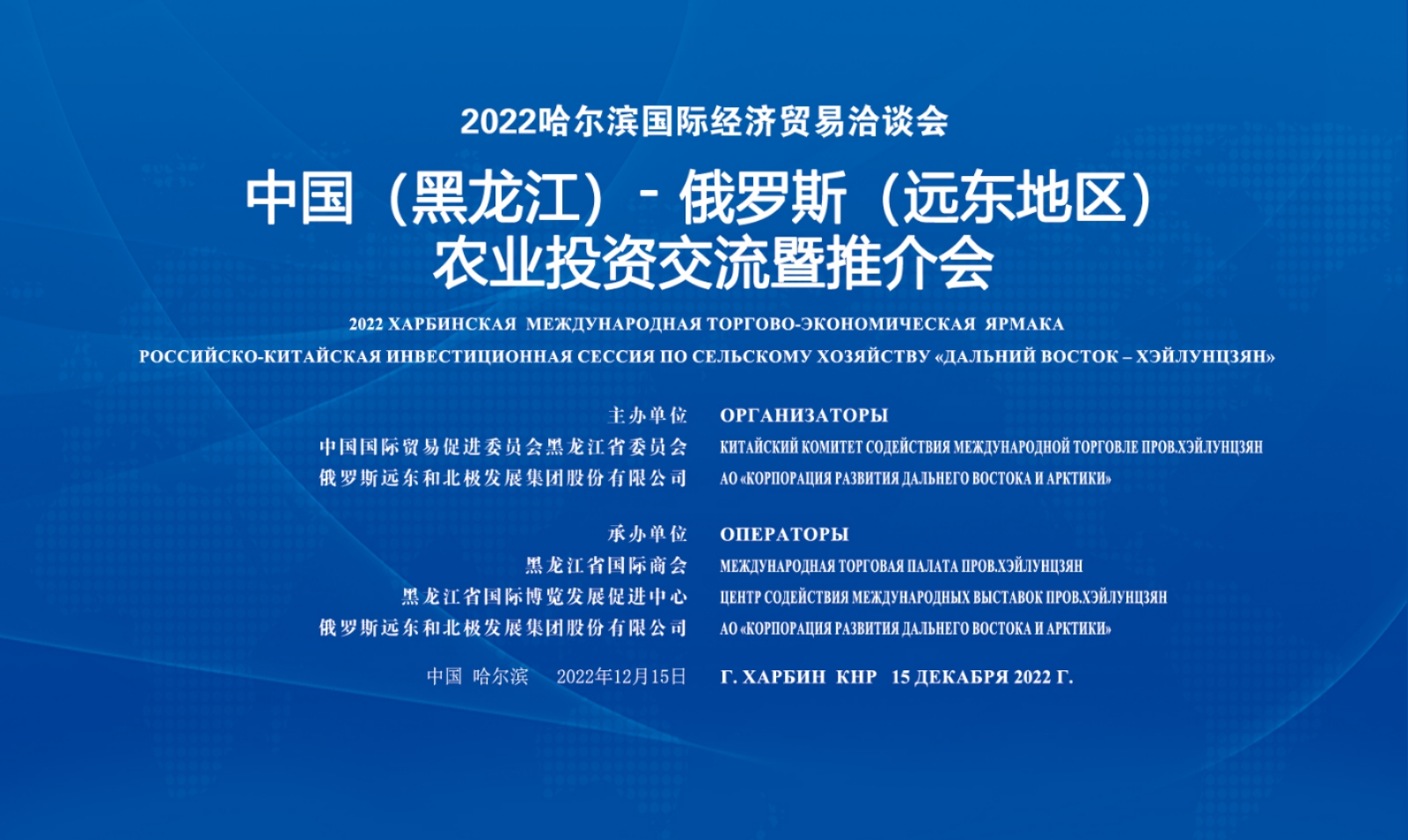 为持续推动哈洽会活动连续性、宣传多样性、全民互动性,哈洽会组委会将于2022年12月15日-30日期间,举办2022“云上”哈洽会系列主题日活动。包括2022“一带一路”工商领袖论坛暨“一带一路”工商协会联盟(BRICA)哈尔滨会议、中俄农业投资交流暨推介会、2022中国企业家太阳岛年会、“品牌·农业·直播”系列直播以及哈洽会IP发布、“云”端开启、“回眸哈洽”、打卡“哈洽”、“我和哈洽会的故事”等主题活动。