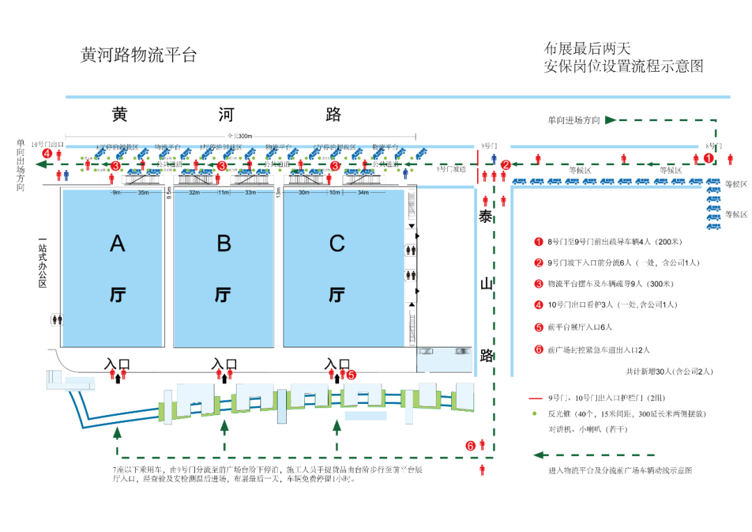 所有施工车辆、货运车辆、参展车辆均要在指定时间内,有序进入黄河路物流平台,并进行消杀及登记。通过“预约、错时、分流”三大举措,既可有效避免车辆拥堵,解决人车聚集的防疫问题,同时还可进一步提高参展商布展效率,布展人员可通过最便捷路径进入各自展区。