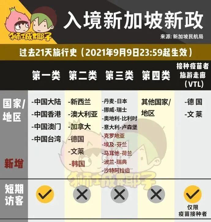 新加坡虽然局部开放了边境,但是还是小心翼翼地将入境地区分为四类+一个疫苗旅行通道。