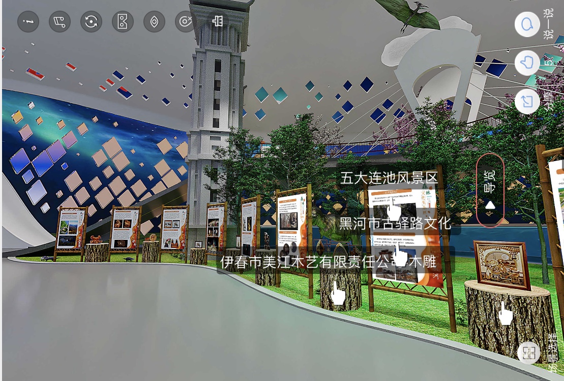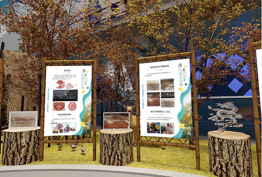 接下来跟随记者的鼠标,来到森林文化生态区,这里满眼的绿,让人感到浓浓的夏至风和;长长的走廊里展板上布满了省内城市的民族传统文化的展板。在森林的环绕簇拥包裹下下,大自然的风好似融进了你的灵魂,它以独特的奥秘等你去探寻......其中最别具一格的要数展板下的那几个小根雕了,C位的逊克久鸿的北红玛瑙、紧挨着铁力的植物工艺画、大兴安岭的老树根雕、桦树皮艺……无一不展现了民俗民族特色。如果你还没有过瘾,那么展板上的介绍一定会满足你的全部好奇心,无论是了解历史民族文化,还是民族的工艺品,亦或是旅游的风景区,这个展区可是让您大饱眼福了……