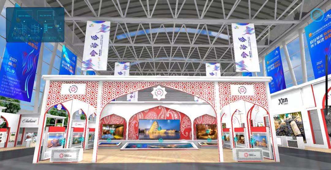 “欢迎莅临主宾国阿塞拜疆展厅”,进入展厅页面,映入眼帘的是红白相间的展厅设计,耳边响起了阿塞拜疆展厅的解说词。此届哈洽会,阿塞拜疆共和国作为主宾国首次参展,带来了22家企业闪亮登场。