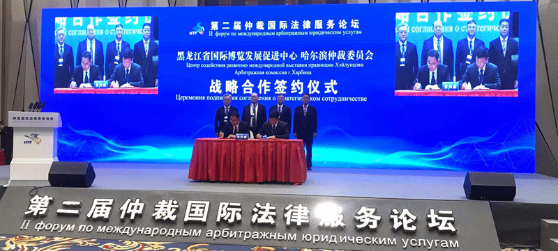 论坛上,为发挥黑龙江省国际博览发展促进中心与哈尔滨仲裁委各自优势,助力哈洽会事业蓬勃发展,营造良好营商环境,双方签署战略合作协议,共同聚力打造哈洽会一流的展览环境,提升哈洽会的国际化、多元化展览元素及国际影响力,联合开展相关法律宣传普及活动,提高哈洽会参展企业运用仲裁法律制度防控风险的能力,减轻维权成本及时间成本,促进哈洽会期间的贸易投资顺利进行。