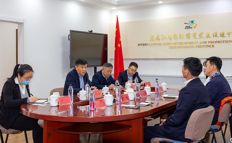 省台办、市台办、台资企业协会代表于2021年1月13日下午14时拜会了黑龙江省国际博览发展促进中心。省台办王汉山副主任介绍了我省台资企业和台湾地区企业发展总体情况。省贸促会副会长谭百成介绍了由省国际博览发展促进中心承办哈洽会、中俄博览会、新博会、绿博会总体情况,台湾企业参展参会有关办法,回顾了哈洽会台湾展区历年来组织筹备及与省台办合作情况。双方就进一步形成合力落实招商招展工作、加强参展参会企业政策性引导、统筹好台湾展区规划管理、提高企业参展参会实效性、加大采购商邀请力度、融合线上线下展会服务平台、策划组织具有针对性活动等达成一致共识。
