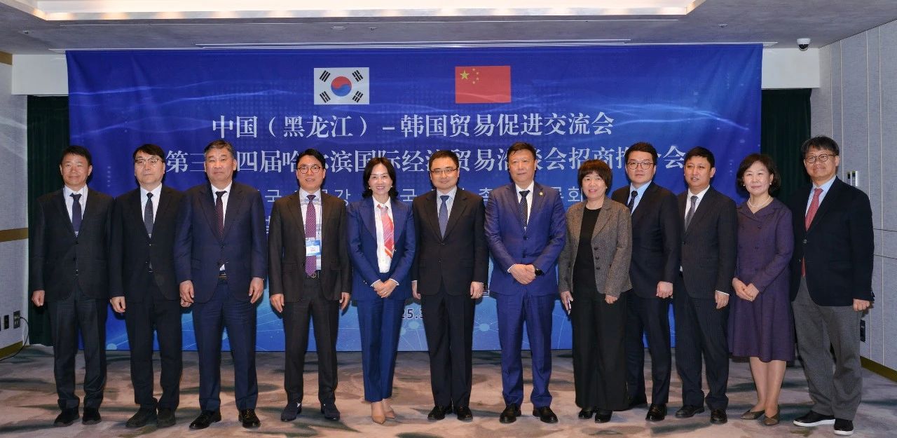 3月21日,黑龙江省贸促会(省国际博览发展促进中心)、韩国韩中文化友好协会共同主办的中国(黑龙江) - 韩国贸易促进交流会暨哈尔滨国际经济贸易洽谈会招商推介会在韩国首尔成功举办。中国驻韩国大使馆公使方坤、韩国中小Obudsman次官崔承宰、大韩贸易投资振兴公社研究院院长洪彰杓,韩国韩中文化友好协会会长曲欢,黑龙江省贸促会副会长、黑龙江省国际博览发展促进中心主任谭百成出席并致辞。中国驻韩国大使馆参赞冉德艳、中国贸促会驻韩国代表处总代表俞海燕,以及韩国各界各地政府部门、工商组织、重点企业参加本次“推介会”。