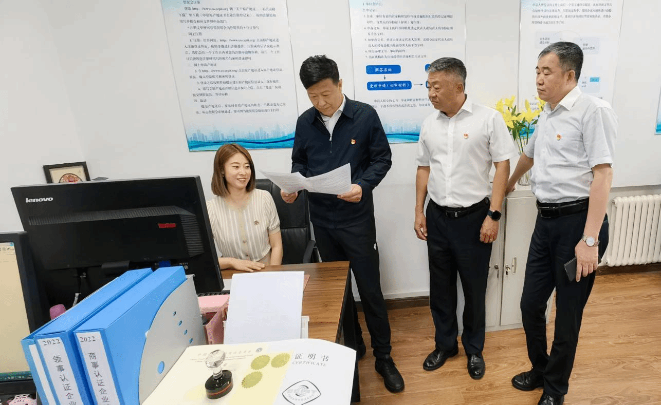 为做好黑龙江省贸促会首度承接的国家级涉外法律综合服务平台“贸法通”轮值工作,推进“能力作风建设年”实践活动走深走实,6月14日,省贸促会副会长谭百成深入省促进中心认证部“走流程”,了解原产地证、商事证明、代办领事认证等商事认证业务有关情况,在线回复“贸法通”企业咨询,全程体验受理RCEP优惠原产地证的流程服务,为企业解决实际问题,常态化开展“我为群众办实事”实践活动。