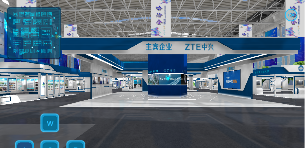 中兴通讯VR展厅,设置了400平方米展厅面积,12个超链接入口,结合本届哈洽会科技赋能新时代主题,突出5G和创新两大要素。以“一分钟数读中兴创新”和“5G领航,创见未来”两个板块,展现创新实力和5G应用,展示了中兴A30手机最新5G终端产品和智能制造、云视频、智慧交通等技术,立体化呈现出5G技术赋能千行百业,激活数字化转型的内生创新力,构建更高质量的5G数字生态。