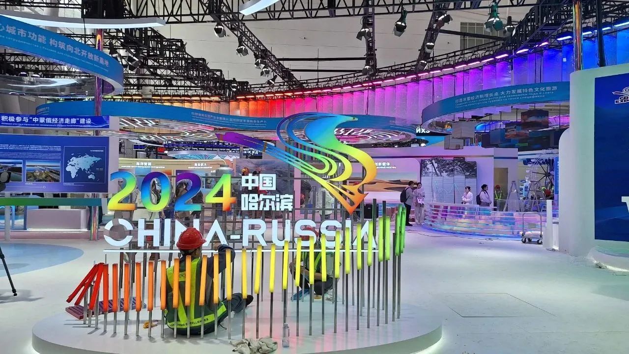 第三十三届哈尔滨国际经济贸易洽谈会举办的时间渐近,主会场哈尔滨国际会展中心进入最后布展阶段。哈尔滨作为本届展会的主题市,主题展区在主会场A馆惊艳亮相。