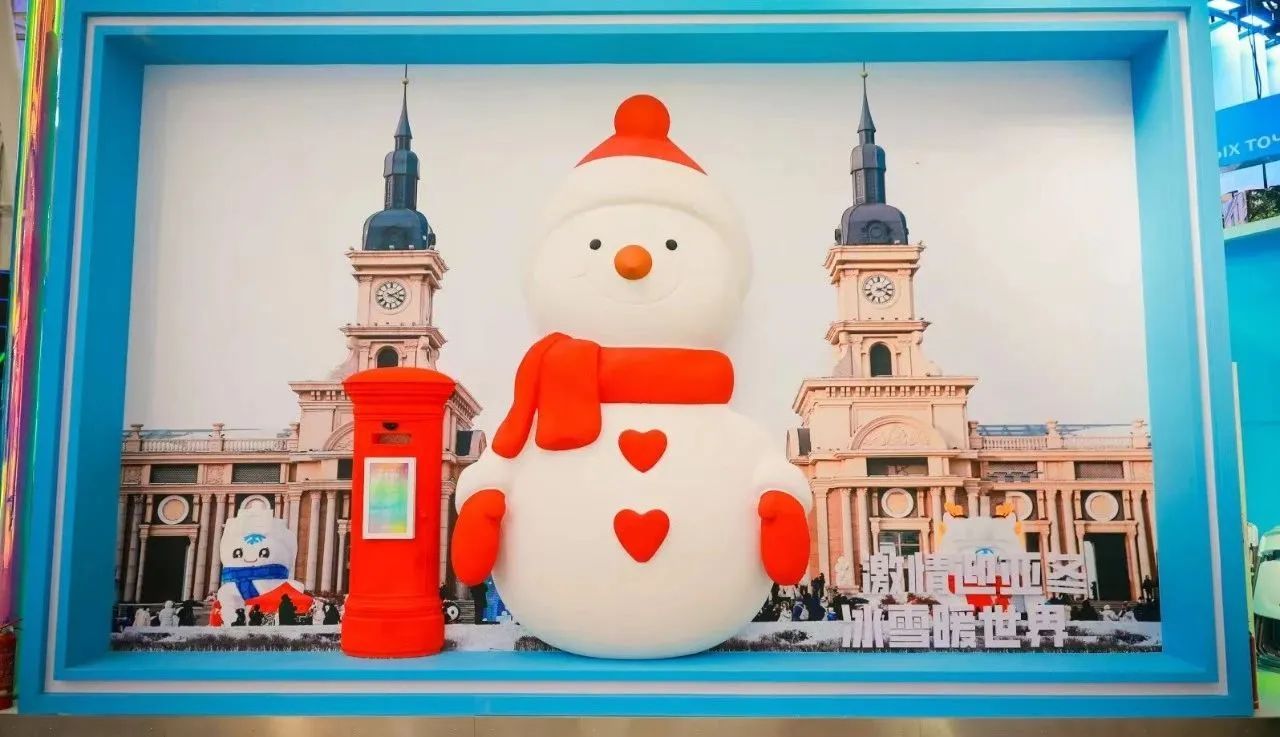 哈尔滨展区今年新增了文创“打卡地”:“火出圈”的“婴儿肥”大雪人被做成壁雕,可供现场观众“打卡”,它可绝对不会融化;缩小版摩天轮也很吸睛,用手一转,带着光影的“摩天轮”还能轻轻转动。哈尔滨展区全面展示了与冰雪相关产品和空灵鼓、冰花瓷及“滨滨”“妮妮”徽章、冰箱贴等特色展品,成为哈尔滨冰雪产业、冰雪经济、冰雪文化发展的一个缩影。