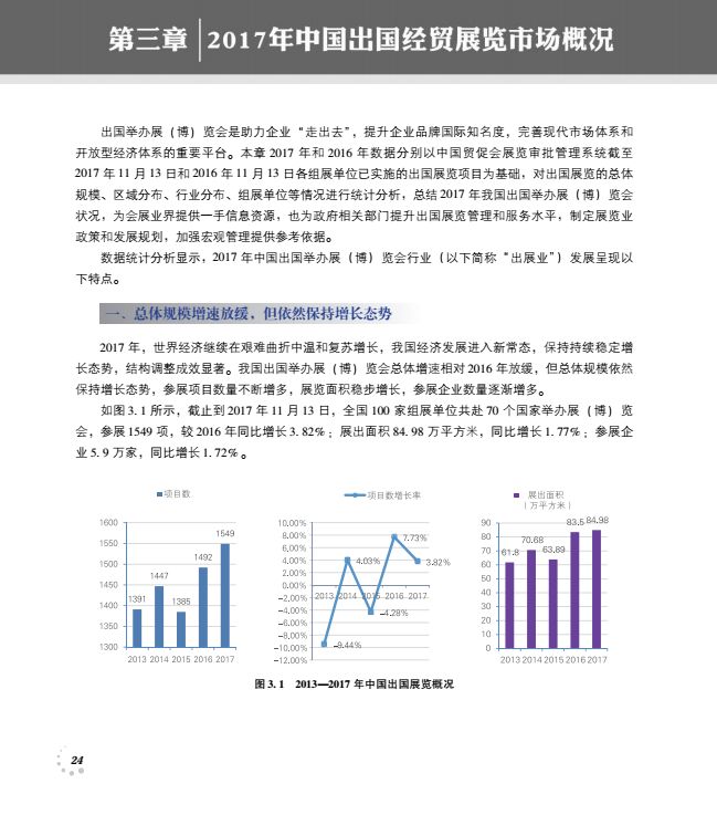 2017年比2016年展览面积同比增长1.77%。
