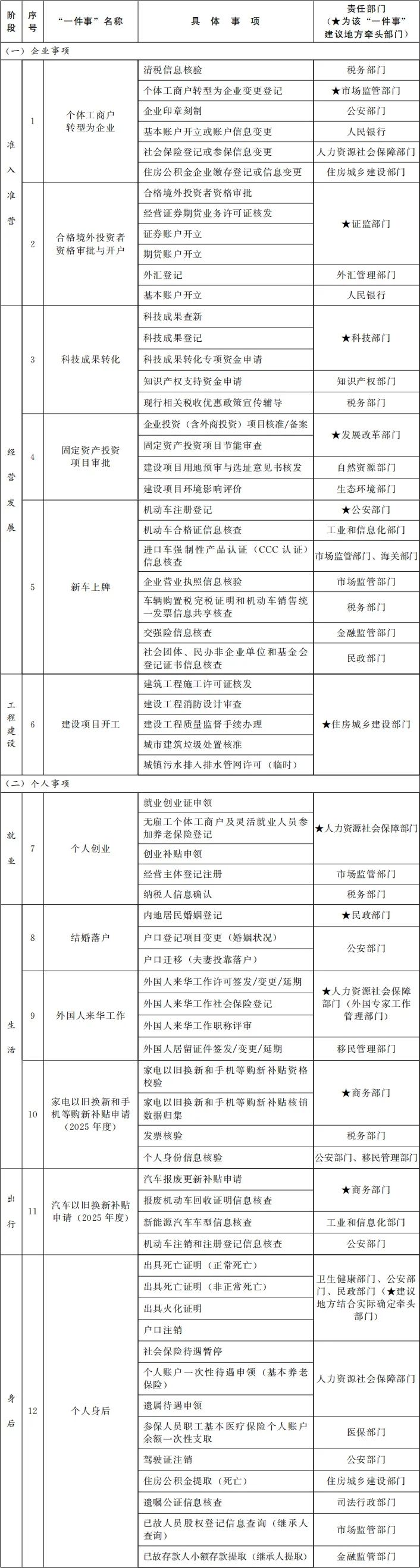 “高效办成一件事”2025年度第一批重点事项清单