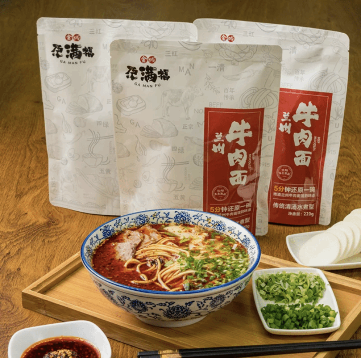 兰州牛肉面传统文化历史为主题、结合现代牛肉面产业工业化生产为特色的设计。