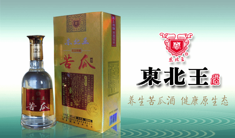 东北王苦瓜酒,内浸一根外形完整的苦瓜,清澈微黄,酒味清香,幽雅舒适,酒体完美 ,风格独特。含有多种对人体有益的营养成分,饮后有“苦尽甘来”的畅快,是天然健康养生白酒。