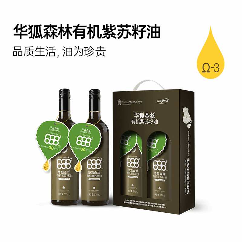 有机紫苏籽油是一种高不饱和度的天然油脂,所含主要成份为Ω-3 α-亚麻酸(a-LNA),含量可高达55%~67%,是已知的食物中含量最高的,而华狐森林-有机紫苏籽油是通过森林黑土培育,使用有机种植法种植,α-亚麻酸更是可高达68.8%±2%。α-亚麻酸是人体不能自主合成的必须脂肪酸。α-亚麻酸能在人体内转化为DHA与EPA,华狐森林-有机紫苏籽油适用于大多数人群,是促进膳食平衡、健康摄油的好选择。